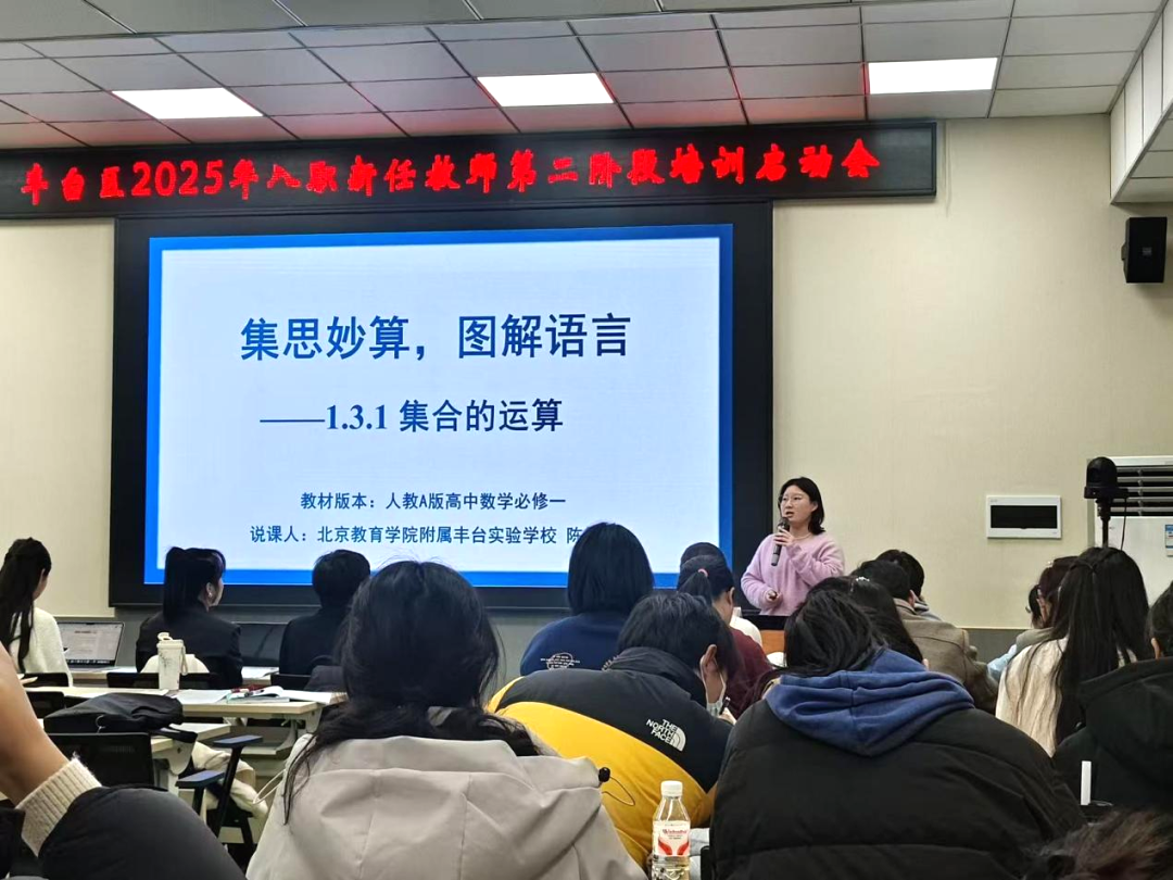 2026-03-18 集思妙算展风采,图解语言启新程——青年教师陈...早春三月,万物竞发。2026年3月13日下午,丰台区2025年入职新任教师第二阶段培训启动大会如期举行。在这场全区新教师瞩目的必修课上,我校科创班数学教师兼班主任陈钰潔作为优秀新教师代表,以一堂题为《集思妙算,图解语言——1.3.1 集合的运算》的精彩说课,向全区同仁展示了扎实的专业素养和独特的教学...