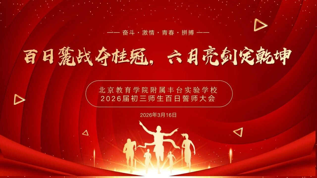 • 春潮涌动,奋进当时。3月16日,我校2026届初三中考百日誓师大会在初中部诚意馆隆重举行,学校领导、初三全体任课教师及学子齐聚一堂,共同开启中考百日冲刺新征程,以坚定信念吹响备战中考的冲锋号角。